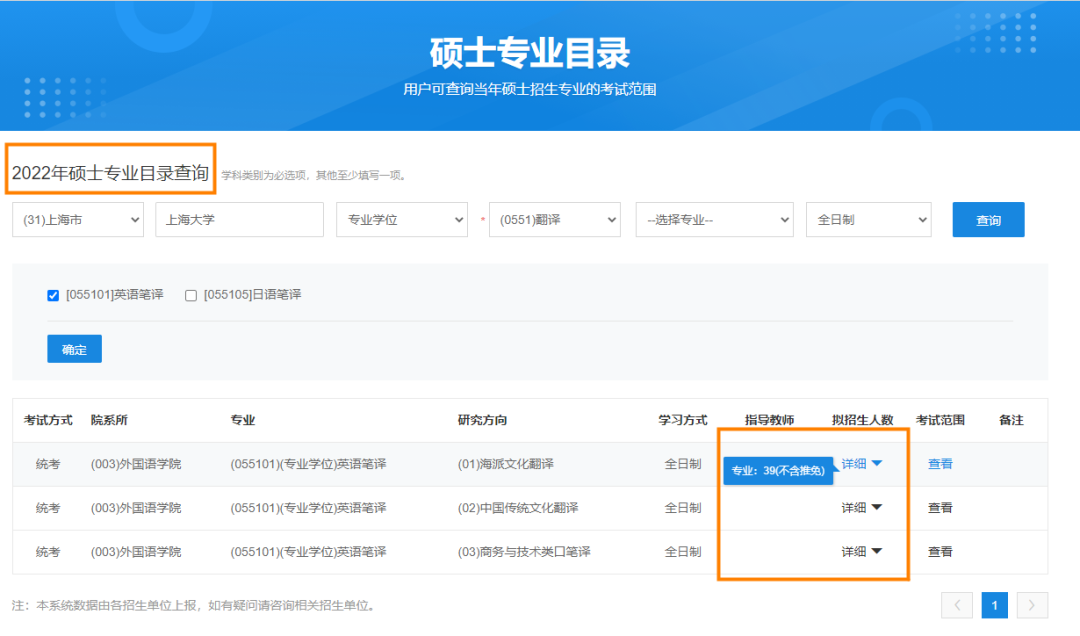 进入以后,就可以查询到该招生单位前一年或者当年的拟招生人数。不过,有时实际拟录取人数和拟招生人数是有出入的,所以大家也可以再去院校的官网查询确认。