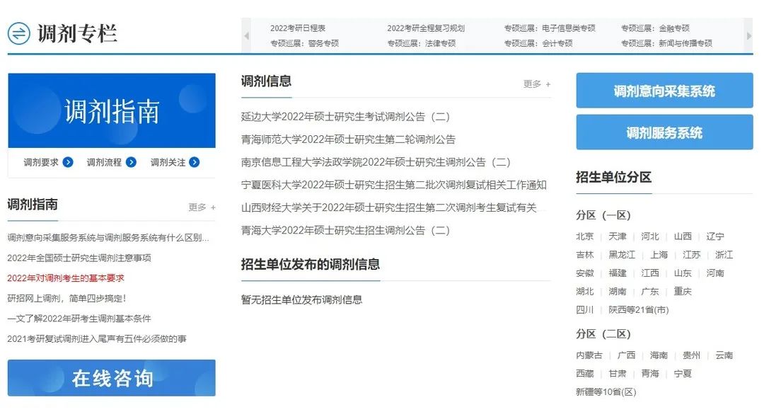另外,下拉到页面底部,有「调剂专栏」,如果走到了调剂这一步,不要灰心,调剂期间需要时刻关注各个院校的调剂信息,很多院校的调剂信息时效性很短,有的院校调剂信息大半夜发出来,第二天早上就截至了,所以准备复试的同时,得时刻紧盯调剂信息哦~此栏目汇集了各个院校的调剂信息,也可以去各个院校各自的网站查询。