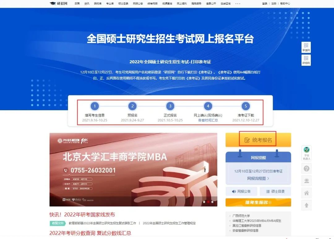 进入【统考网报】,咱们就可以看到考研的「预报名」、「正式报名」、「网上确认」和「准考证下载」时间啦,每年的时间差不多,预报名在9月底,正式报名在10月份,网上确认时间按照各自报名院校的安排,准考证打印时间在考前半个月的样子~~