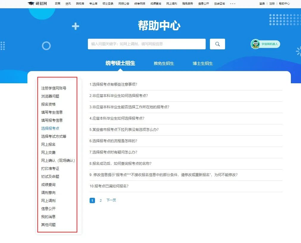 另一个宝藏栏目就是【帮助中心】啦,在这个栏目里我们可以了解到多个“技术性”问题,如报名资格、报考点的选择、网上报名等各种问题,信息官方、准确,大大缩短了我们在信息海中的查找时间。
