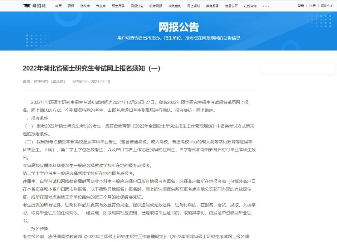首先,了解各个省份【网报公告】是必不可少的一步,各个省份的网报公告大家要仔细阅读,公告涉及到「报考条件」、详细的「报名步骤」,不要因为这些小细节没有报名成功而让自己后悔一年呀。